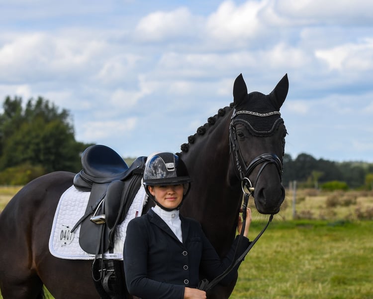 Die lackschwarze Hannoveraner Stute Freya v. Filou-Fürst Nymphenburg überzeugt nicht nur durch ihre moderne Aufmachung und ihr Erscheinungsbild, sondern auch durch ihre hervorragende Rittigkeit und Qualität. Ihren ersten Start in einer Reitpferdeprüfung münzte sie kürzlich auf Anhieb in eine Platzierung um. Ebenfalls hervorzuheben sind ihre drei Grundgangarten, die allesamt konstant im 8er-Bereich anzusetzen sind. Damit bringt Freya alles mit, was man sich für eine Karriere im Viereck wünscht. Wer eine talentierte Sportpartnerin mit Perspektive sucht und in der kommenden Saison direkt Losreiten möchte, ist bei dieser talentierten Stute genau richtig. Für weitere Infos melden sie sich gern direkt bei Luisa Erichsen unter +49 174 2491719 (gern auch per WhatsApp).