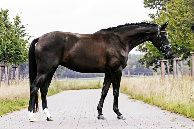 Della Luna Della Luna is a stunning black mare who is still fully in development. In the stable, Della Luna is an absolute gem and is increasingly showing what she is capable of under the rider: Della Luna is the sister to three internationally successful dressage horses: the Grand Prix series winner Dante's Dream, D'Esperanza 2, who has numerous Grand Prix placements, and the multiple PSG-placed Joker. Della Luna's mother also has highly successful siblings, including the Grand Prix horse Dakar and the CCI3* horse It's Chico. Moreover, Della Luna also demonstrates great talent in free jumping, indicating that a career as a hunter or eventing horse could be open to her. Good X-rays are available. You can find us just 30 minutes from Berlin, where we have raised Della Luna since she was a foal on our agricultural farm in large pastures in a herd environment. If you would like to meet Della Luna and our other young horses or learn more, we look forward to your call at 03301 577 2585! *** The trip is worth it! For more interesting young horses, see below in our other listings ***