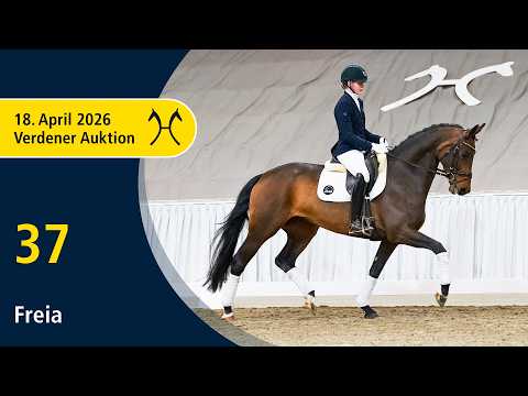 Das Pferd ist ein Verdener Auktionspferd und wird am 18.04.2026 onlive versteigert. Vom 6.04. bis zum 18.04. kann das Pferd jeden Tag beim öffentlichen Training besichtigt und ausprobiert werden. Das Startgebot bei der Versteigerung ist 8.000 Euro. Freia präsentiert sich als leicht zu förderndes Dressurtalent mit lockerem Bewegungsablauf, aus bestem Züchterhause stammend. Ihr Halbbruder Dr. No ist mit Gillian Ewen siegreich in S-Dressuren, ihre Halbschwester Dana wurde 2024 hochpreisig nach Frankreich verkauft. Aus dieser Mutterlinie stammen weitere erfolgreiche Sportpferde: Amonitas (int. Grand Prix mit Florian Bacher), Actuado (int. S** mit Heike Kemmer), Banderas (S*** mit Peter Gmoser) und World Performance Washington (int. Grand Prix mit Luis Principe). 1. Generation Sportpferde Dressur: Dr. No 11 v. Dr. Watson (DRE: S** mit Gillian Ewen,Deutsche Amateur-Meisterschaft Dressur 2024). Auktionspferde: Vet+ Dana v. Da Costa (VA 2024). 2. Generation Sportpferde Dressur: Amonitas v. Ampere (NLD) (DRE: int. Grand Prix mit Florian Bacher,Grand Prix Special -international- 2024); Lario de Adama de Susa v. Locksley II (DRE: int. Grand Prix mit Claudio Castilla Ruiz,GPS - Grand Prix Special 2024,GP - Grand Prix 2024,GP - Grand Prix 2024,Grand Prix Kür -international- 2023,GP - Grand Prix 2023,GPS - Grand Prix Special 2023,GP - Grand Prix 2023,GP - Grand Prix 2022); Banderas 39 v. Barclay (DRE: S*** mit Peter Gmoser,GPS - Grand Prix Special 2023,GP - Grand Prix 2023,GPS - Grand Prix Special 2023,GP - Grand Prix 2023,GPS - Grand Prix Special 2022,GP - Grand Prix 2022,VA 2012). Sportpferde Fahren: Rico 721 v. Rotspon (Fahren: S mit Rudolf Huber). Aufbauprüfungen Dressur: Sevillano 13 v. Scolari (DRE: L); Lucio 41 v. Lauries Crusador (DRE: L); Ronaldo 171 v. Rotspon (DRE: L). Auktionspferde: Letizia v. Locksley II (VA 2009); Leonie v. Locksley II (FoVA 2007); StPr Rania K v. Rotspon (VA 2009); Wingst v. Willem's As (VA 1996). Bes. Prämientöchter: StPr Rikita v. Royal Blend; StPr Rubina v. Rotspon; StPr Desiree v. Davignon I. 3. Generation Sportpferde Dressur: Actuar/Actuado v. Acorado (DRE: int. S** mit Heike Kemmer); Wonder Why v. Wanderer (DRE: M mit Julia Wann). Sportpferde Springen: gek. Hengst Contador Gold SVM/Executive v. Contendro I (SPR: 1,40 m mit Sebastian Adams,Verden 2010,VA 2010: 55.000 €); Calli Top GP v. Contendro I (SPR: 1,45 m mit Dóra BOGNÁR); Diaconda v. Diacontinus (SPR: 1,40 m mit Clarissa Ingerl); Gabbiano 5 v. Grosso Z (SPR: 1,40 m mit Strunk,Anne); Bella Comtess v. Balou du Rouet (SPR: 1,35 m mit Kartni NIELSEN,FoVA 2006,VA 2012); Carrico 2 v. Carrico (SPR: 1,35 m mit Mohammadmahmood POURHEIDARI). Aufbauprüfungen Springen: Caribbean Queen v. Carrico (SPR: L); Calisha Completa v. Contendro I (SPR: L,Gelände: L); Gigolo 446 v. Graf Grannus (SPR: L). Aufbauprüfungen Gelände: Calisha Completa v. Contendro I (SPR: L,Gelände: L). Auktionspferde: v. Gullit v. Gullit (VA 2002); Let's Go 2 v. Landsdown (VA 1995). Bes. Prämientöchter: StPr Gwyneth v. Gullit; StPr Silverlady v. Sandro; StPr Michelle v. Matcho. 4. Generation Sportpferde Dressur: World Performance Washington v. Wolkenstein II (DRE: int. Grand Prix mit Luis Principe,Grand Prix Kür -international- 2014,GP Grand Prix 2014,GP - Grand Prix 2013,Grand Prix Kür -international- 2013,Reem Acra FEI World Cup Dressage 2013,Grand Prix Kür -international- 2012,Grand Prix -international- 2012,Grand Prix Special -international- 2012,GP - Grand Prix 2012,Grand Prix Kür -Weltcup- Qualifikation -international- 2012,GP - Grand Prix 2011,GP - Grand Prix 2011); Sam 121 v. Salvano (DRE: int. Grand Prix mit Benjamin Werndl,Dressurprüfung Kl. S- Grand Prix de Dressage 2007,Dressurprüfung Kl. S- Grand Prix de Dressage 2007,Dressurprüfung Kl. S- Grand Prix Special - 2007,Dressurprüfung Kl. S- Grand Prix de Dressage 2007,Nationenpreis Dressur Grand Prix -international- 2007,Dressurprüfung Kl. S- Grand Prix Kür - 2007,Grand Prix Kür-international- 2007,Dressurprüfung Kl. S- Grand Prix Kür - 2007,Dressurprüfung Kl. S- Grand Prix de Dressage 2007,Dressurprüfung Kl. S- Grand Prix Kür - 2006,Dressurprüfung Kl. S- Grand Prix de Dressage 2006,Dressurprüfung Kl. S- Grand Prix de Dressage 2006,Grand Prix Kür-international- 2006,Dressurprüfung Kl. S- Grand Prix Kür - 2006,Dressurprüfung Kl. S- Grand Prix de Dressage 2006,Dressurprüfung Kl. S- Grand Prix de Dressage 2006,Grand Prix Kür-international- 2006,Dressurprüfung Kl. S- Grand Prix Special - 2006,Dressurprüfung Kl. S- Grand Prix de Dressage 2006,Grand Prix Kür-international- 2006,Dressurprüfung Kl. S- Grand Prix Kür - 2006,DM-Wert.Jr.Dress.Kl.S 2005,Europameistersch.Dress.S-Jr-Mannschaft 2005,Europameistersch.Dress.S-Jr-Einzel 2005,Dressurprüfung - Grand Prix 2004,Deutsche MeisterschaftJunge Reiter Dressur 2004,Europameistersch.Dress.S-Jr-Einzel 2004,Europameistersch.Dress.S-Jr-Mannschaft 2004,Dressurprüfung - Grand Prix Special 2004,Dressurprüfung - Grand Prix 2004,DM-Wert.Jr.Dress.Kl.S 2003,Dressurprüfung - Grand Prix 2003); zeitconcept Wallander v. Wolkenstein II (DRE: Grand Prix mit Julia Meller,Dressurprüfung Kl. S*** - Grand Prix Special - 2016,Dressurprüfung Kl.S*** mit Piaffe und Passage 2016,Dressurprüfung Kl.S*** mit Piaffe und Passage 2016,Dressurprüfung Kl. S*** - Grand Prix de Dressage 2016,Dressurprüfung Kl.S*** mit Piaffe und Passage 2016,Dressurprüfung Kl.S*** mit Piaffe und Passage 2015,Dressurprüfung Kl. S*** - Grand Prix Kür - 2015,Dressurprüfung Kl. S*** - Grand Prix de Dressage 2015,Dressurprüfung Kl. S*** - Grand Prix de Dressage 2014,Dressurprüfung Kl. S*** - Grand Prix de Dressage 2014,Dressurprüfung Kl.S*** mit Piaffe und Passage 2014,Dressurprüfung Kl. S*** - Grand Prix Special - 2014,Dressurprüfung Kl. S*** - Grand Prix de Dressage 2014,Dressurprüfung Kl. S*** - Grand Prix Kür - 2014,Dressurprüfung Kl. S*** - Grand Prix de Dressage 2014,Dressurprüfung Kl. S*** - Grand Prix de Dressage 2014,Dressurprüfung