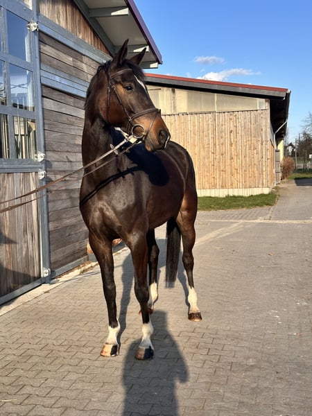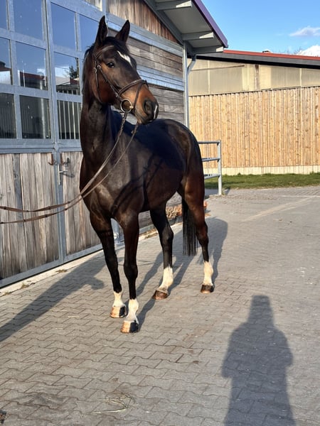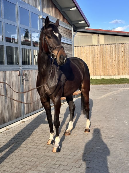 📞 Bei Interesse bitte telefonisch melden: Festnetz: 034292 / 291998 Mobil: 0176 / 22616295 🕘 Mo.–Fr. 09:00–18:00 Uhr | Sa. 09:00–15:00 Uhr | Sonntag Ruhetag ⸻ Foxy – 5-jährige Stute von Comme Prévu x For Edition mit Perspektive für Sport und Freizeit Foxy ist eine 5-jährige Stute von Comme Prévu x For Edition mit einem Stockmaß von ca. 1,68 m. Sie überzeugt durch ihr liebenswertes Wesen und ihre unkomplizierte Art im täglichen Umgang. Im Handling zeigt sie sich stets brav, aufmerksam und angenehm – ein Pferd, das leicht zu arbeiten ist und Freude macht. Foxy befindet sich altersentsprechend in der Ausbildung und läuft sicher in allen drei Grundgangarten (Schritt, Trab, Galopp). Sie hat bereits erste Sprünge unter dem Reiter absolviert sowie Erfahrung im Freispringen gesammelt und zeigt sich dabei motiviert und übersichtlich. Auch im Gelände war sie bereits unterwegs und präsentiert sich dort ruhig und zuverlässig. Sie ist gesund, regelmäßig entwurmt und geimpft sowie aktuell frisch beschlagen. Foxy bringt eine sehr gute Grundlage mit und ist bereit, in der kommenden Saison erste Turniererfahrungen zu sammeln. Ein ideales Pferd für Reiter, die sich ein junges, talentiertes Pferd mit gutem Charakter weiter aufbauen möchten. ⸻ Steckbrief: • Alter: 5 Jahre • Stockmaß: ca. 1,68 m • Abstammung: Comme Prévu x For Edition • Ausbildung: angeritten, sicher in den GGA, erste Sprünge • Eignung: Dressur, Springen, Freizeit • Gesundheit: regelmäßig geimpft & entwurmt, frisch beschlagen • Charakter: lieb, unkompliziert, lernwillig ⸻ Besichtigung & Probereiten: • Probereiten: 30 € pro Pferd (max. 2 Reiter) • Feiertags: 50 € • Absagen mind. 24 Std. vorher, sonst kostenpflichtig • Vorführen durch Bereiter: 25 € Für die Terminbestätigung bitte vollständigen Namen & Adresse angeben. Ankaufsuntersuchung möglich. Transport kann organisiert werden. ⸻ 📍 Standort: Leipzig 💰 Preis: auf Anfrage 🌐 www.deutsche-pferde-boerse.de ⸻ Hinweis: Stockmaß-Angaben sind Schätzungen des Verkäufers und keine zugesicherten Eigenschaften. Der Verkauf erfolgt im Kundenauftrag.