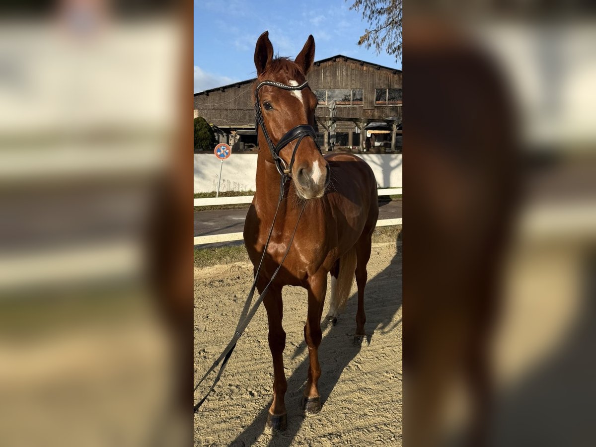 For sale is a stunning four-year-old chestnut mare by Von und zu x Lauries Crusador, exhibiting three very good basic gaits. Notably, her very expressive, elastic trot and her expansive canter stand out. In daily work, the mare consistently demonstrates her diligence, willingness to perform, and strong learning ability. She is beginning to show some collection and already performs very confidently in extended canter. Further information and videos are available by phone.