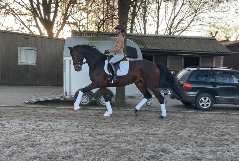 For sale is this beautiful, long-legged 4-year-old mare by Vivino out of a Sandro Hit/Fabriano dam. This large-framed and athletic young dressage horse impresses not only with above-average basic gaits but also with a high willingness to perform and excellent rideability. With a height of 1.74 m, she is suitable for larger riders as well as for ladies' riding. The mare is also very interesting for breeding due to her sportily secured dam line. Several Hanoverian champions and BuCha finalists have come from her mother. She can be viewed and tried out at any time! If you are interested or have any questions, please feel free to contact me! Tel. +49 170 4852207 *Sale on behalf of someone else*