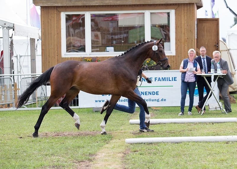 Zum Verkauf steht eine 6-jährige Stute von Grey Top/Contendro/Wilawander xx. Granne ist ca. 1,63 m groß und ist eine Han.Pr.St.. Sie hatte bereits 4-jährig ein Fohlen und wurde dann 5-jährig schonend angeritten. 6-jährige ist sie nun Springpferde A platziert und Springpferde L gut gelaufen. Granne wird direkt vom Aufzüchter verkauft. Ihrer Stutenleistungsprüfung legte sie mit guten Noten ab. Die Springveranlagung wurde mit 8,5 und die Grundgangarten mit 7,3 (Trab 7, Galopp 8, Schritt 7) bewertet. Der Fremdreiter vergab die 9,0 für die Rittigkeit. Sicherlich ist sie aufgrund ihrer guten Grundgangarten und ihrer Springveranlagung auch für die Vielseitigkeit geeignet. Granne ist eine brave Stute, die sich auch von schwächeren Reitern gut reiten lässt. Sie kennt Ausritte in der Gruppe sowie alleine. Aufgrund ihres Alters bedarf sie eine weitere Förderung und Ausbildung. Mit der entsprechenden Förderung sicherlich eine Stute, der alle Türen offen stehen. Ein TÜV ohne Befund liegt vor.