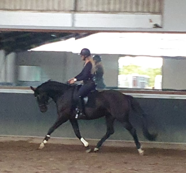 6-jährige Stute mit viel Potenzial angeboten. Sie ist bei uns geboren, daher ist die gesamte Geschichte bekannt. Sie wurde mit 4 Jahren angeritten und sehr ruhig ausgebildet. Jetzt ist sie bereit, voll ins Training einzusteigen. Sie hat einen guten Schritt, einen sehr rhythmischen Trab und einen groß gesprungenen Galopp. Sie hat ein weiches Maul und ist geschmeidig im Körper. Sie ist vorwärts gerichtet, ohne unter dir wegzulaufen. Sie ist noch relativ unerfahren, daher nicht für Anfänger oder unsichere Reiter geeignet. Im Umgang ist sie lieb, kann mit anderen Pferden. Keine Stallmängel. Die Kosten für die Nachuntersuchung trägt der Käufer. Klinisch am 16.09.2025 genehmigt.