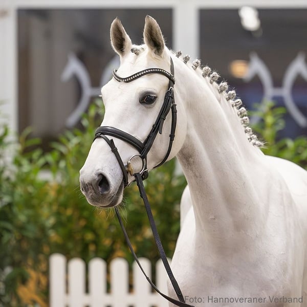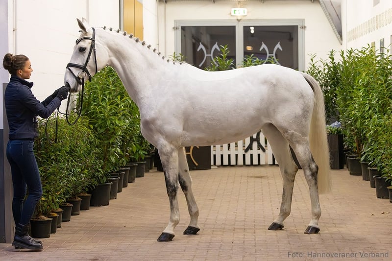 Springtalent der besten Norm mit Erfolgen aus dem Nachwuchssport. Grey Sloane konnte sich bereits mit ihrer Reiterin Nelly Frederike Saßmann in der Springpferdeprüfung der Klasse A platzieren und zeigt beste Anlagen, um sich im großen Sport zu etablieren. Ihre Halbschwester Donneli v. Diacontinus ist erfolgreich in Aufbauprüfungen der Klasse L. Sportname: Grey Sloane Leistungsprüfung: Feldprüfung Reitpferd - Trab 6,50 Galopp 6,50 Schritt 6,50 / Durchschnitt Rittigkeit 7,00 / Durchschnitt Springen 6,83 Turniererfolge: SPF: A 1/5. GWS: 1/1. 1. Generation Aufbauprüfungen Springen: HannPrA Donneli v. Diacontinus (SPR: L). 2. Generation Sportpferde Dressur: Sangthàl/Sangthal v. Samba Hit I (DRE: M** mit Louisa Wedermann). Sportpferde Springen: Dampati v. Don Alfredo (SPR: int. 1,40 m mit Stephanie Zahn); Calla/Calla 51 v. Con Chello (SPR: 1,40 m mit Jenny Wessel); Chagall 260 v. Converter (SPR: 1,35 m mit Christian Hess); La Gioia v. Liberty M (SPR: 1,35 m mit Sophia Roffeis); Virginia 216 v. Valentino (SPR: 1,30 m mit Rene Dittmer); Charly 1586 v. Clinton II (SPR: 1,30 m mit Alexander Auer); PrSp VbPr Santana/Santana 546 v. Santander H (SPR: 1,30 m mit Christina Sauter). Aufbauprüfungen Springen: Carlos Silver v. Comte (SPR: L); StPr Upayá/Upaya v. Uckermärker (SPR: L). Auktionspferde: Aconito v. Action Blue (VA 2024); CSI Miami v. Chacoon Blue (VA 2023); Chakaria v. Chacoon Blue (VA 2022). 3. Generation Sportpferde Dressur: Dolittle 1 v. Lenz (DRE: S** mit Krekel,Anja). Sportpferde Springen: Livius 66 v. Lenz (SPR: M mit Mueller,Walter); Argonaut 32 v. Adamit II (SPR: M mit Kluesener,Oliver). 4. Generation Sportpferde Dressur: FINK 17 v. Feingold (DRE: M mit Huentrup,Bernhard 3010,SPR: L). 5. Generation Sportpferde Dressur: Jenisej 2 v. Jirko (DRE: M mit Rittner,Wiebke). Sportpferde Springen: Julius Caesar 10/Julius Caesar 10 v. Jupiter II (SPR: S mit Lerche,Stephan); Sidney 60/Sidney 60 v. Seebote (SPR: M mit Silke Singer); Jupiters Deern v. Jupiter II (SPR: M mit Freistedt,Norbert); Feuerwirbel/Flip-Flop v. Feuerwerk (SPR: M mit Fried,Günter); Julchen 11066/Jule 13 v. Jirko (SPR: M mit Knoch,Christoph); Diskus 74 v. Durchgang (SPR: M mit Quitschau,Gerhard). Aufbauprüfungen Springen: Feuerlady (1.Zweitschrift)/Feuerlady 7 v. Feuerwerk (SPR: M mit Sulmoni,Clint); Alltrak 1/ALLTRACK v. Adamit II (SPR: L). Mutter: Lykia ZL: 8/8 ZSP: Feldprüfung Reitpferd - Trab 6,50 Galopp 6,50 Schritt 7,00 / Durchschnitt Rittigkeit 7,00 / Durchschnitt Springen 8,00 Turniererfolge: SPR: L 2/2. 1/3. 1/4. SPR: A 4/2. 1/4. SPF: A 1/4. 1/w. Großmutter: Jiris 24699 ZL: 16/14 Das Pferd ist ein Verdener Auktionspferd und wird am 25.01.2026 online versteigert. Vom 12.01. bis zum 25.01. kann das Pferd jeden Tag beim öffentlichen Training besichtigt und ausprobiert werden. Das Startgebot bei der Versteigerung ist 8.000 Euro.