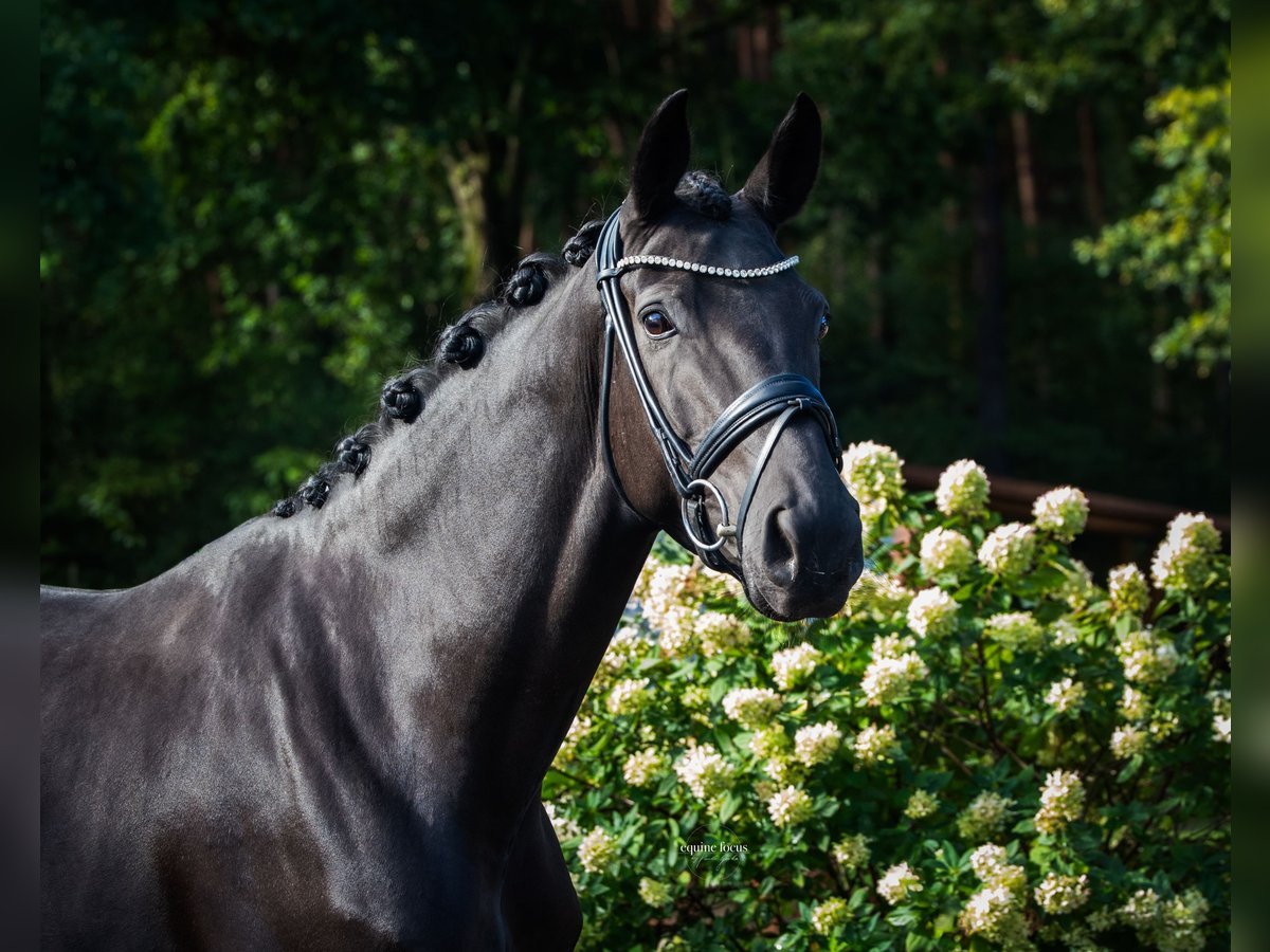 Morricone's Märchen is a charming, honest Hanoverian mare with a refined character and pleasant rideability. As the daughter of the stallion Morricone out of a Don Schufro mare, she combines two lines renowned for their rideability, willingness to perform, and reliability. She consistently demonstrates a eager learning attitude, calmness, and lightness in her frame—an ideal young horse for riders who value good riding qualities and a clear mind. Morricone's Märchen completed her mare performance test with the predicate "State Premium Mare." She received an 8.5 in all basic gaits, as well as for rideability under an external rider—an impressive testament to her quality and pleasant riding sensation. In daily handling, she proves to be absolutely well-behaved, uncomplicated, and reliable, both in the stable and during work. She is ideally suited for amateurs or trainers seeking a young horse with excellent potential for further development.