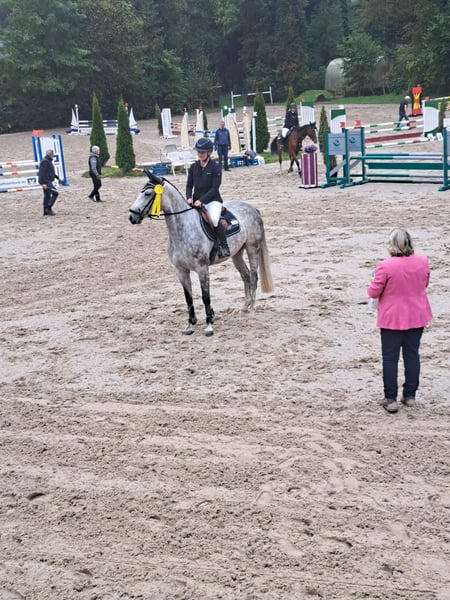 For Joy stammt aus besten Springlinien. Ihr Vater Diacontinus und der Muttervater For Pleasure sprechen für sich. Sie hat gute Bewegungen, ist rittig und leicht zu sitzen. Sie wurde erst relativ spät mit vier angeritten und ist seit Sommer 2025 auf zwei Turnieren vorgestellt worden. Sie hat in Springpferde A einen ersten und einen vierten Platz erreicht. FJ zeigt eine gute Kombination von Mut, Vorsicht und Springvermögen im Parcour. Sie galoppiert auch in „guckigen“ Parcours energisch zu den Sprüngen, springt vermögend und zeigt zugleich große Vorsicht um Fehler zu vermeiden. Auch beim Ausreiten ist sie gelassen. Ihre Mutter For Fun (braun) ist Staatsprämienstute und im hannoverschen Springpferdeprogramm. Sie hat mit einem Amateur M** gewonnen und besitzt außerordentliches Springvermögen. (s. Freispringvideo) Bei Ihrer Tochter kann man sich aufgrund ihres hervorragenden Exterieurs und Interieurs nach dem Sport eine Zweitkarriere in der Zucht gut vorstellen. Gute Röntgenbilder liegen vor. Wegen des altersbedingten Verkaufes unseres Pferdehofes wird sie an den/die passende(n) Reiter(in) günstig abgegeben.