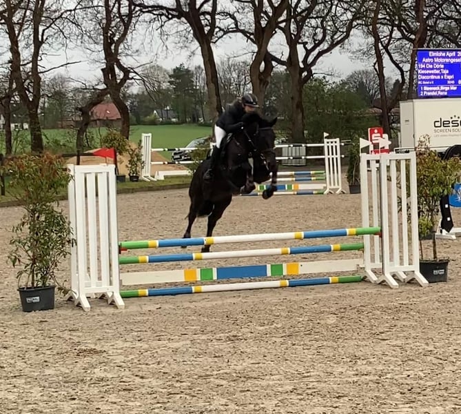 For sale is a very calm and well-behaved mare by Diacontinus out of Espri. She has already won an 8.5 in the A* show jumping classes this year and has placements in A** show jumping. She stands approximately 16.1 hh and comes directly from the breeder. Trailer and truck transport are no problem! Of course, she is also very well-behaved at the blacksmith’s. Last year, she underwent a chip operation and was back competing at shows afterwards. Accordingly, her X-rays, including the back, show no abnormalities. Videos can be sent via WhatsApp upon request. Feel free to contact me if you have any further questions.