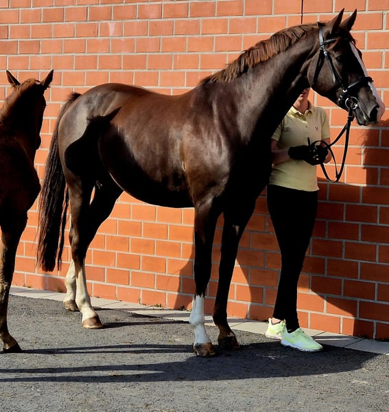 Qui ha la possibilità di acquistare una splendida purosangue castana di Rotspon x Salvano x Westerland, incinta di Segantini Due (Secret x Fidermark), prevista per maggio. Attualmente ha ancora un puledro di Bon Succes (nato il 30.04.2025) al suo fianco. È possibile acquistare anche il puledro insieme alla madre, in gravidanza, al prezzo di 10.000 euro. Le visite sono possibili in qualsiasi momento previo appuntamento. Per interesse o domande, non esiti a contattarci.