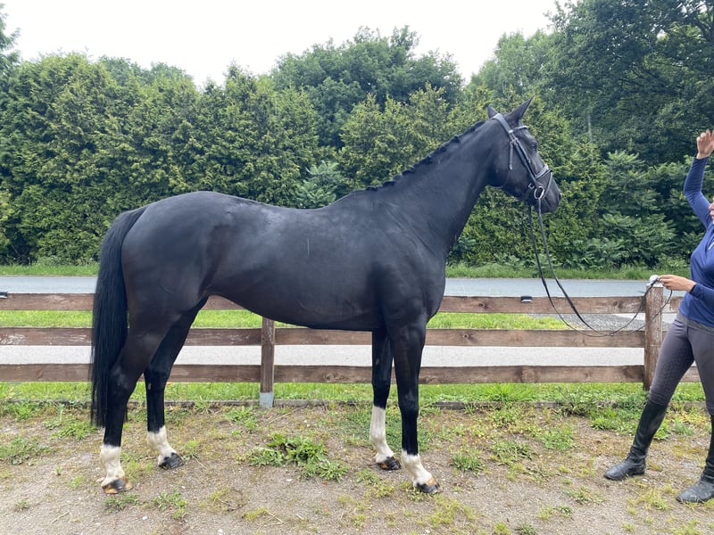 **Sales Advertisement: Beautiful Hanoverian Mare** For sale is a talented Hanoverian mare, born in 2020. She presents herself in an elegant black coat and has a height of 169 cm. This mare is excellently suited for dressage and already shows promising progress in her training. Her friendly nature and high willingness to learn make her an ideal partner for ambitious riders. She is kept in a species-appropriate manner, well-socialized, and has already gained initial experience under saddle. For further information or to arrange a viewing appointment, I am at your disposal. Don’t miss this opportunity to acquire a promising dressage mare!