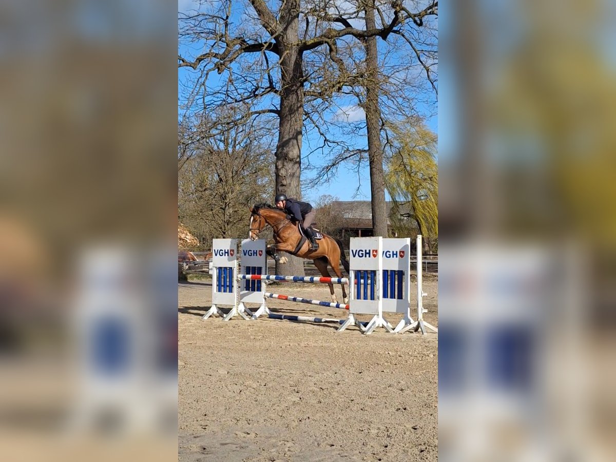 Unser Franzi ist eine sportlich,schicke Stute für den Amateursport. Erst 4 jährig angeritten steckt sie noch mitten in der Ausbildung zum Springpferd. Durch ihre 3 sehr guten GGA's und mit entsprechender Förderung, könnte sie durchaus auch für die ein oder andere Dressuraufgabe geeignet sein. Mit ihrer eher schüchternen und zurückhaltenden Art braucht sie in ungewohnter Umgebung ein wenig Zeit um wirklich anzukommen. Dabei ist sie aber immer brav und ohne jegliche Unarten. Auch beim Reiten wartet sie lieber darauf, dass der Impuls vom Reiter kommt, bevor sie etwas macht. Sie kennt bereits die ersten Turniere, ist schmiede/verladefromm und nun bereit ein neues Zuhause zu suchen.