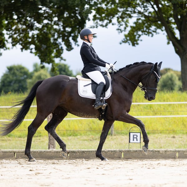 Top opportunity! This mare, descended from Le Formidable x Don Frederico, is not only beautiful but also brings quality. Lisa presents herself with a black jacket and plenty of coolness. She impresses in all three basic gaits – walk, trot, and canter – with quality and clarity. This compact, typey mare captivates with her outstanding charisma! With her consistently active hind leg, she brings the ideal prerequisites for successful further training. She already shows herself as a rounded and well-built horse with a lot of presence and charm. At 5 years old, she is completely unspoiled and in the best age! In her first competition start in the Dressage Class A, she was able to place directly in 3rd place with a score of 7.8. Currently placed in Dressage A! Of course, she is loading and farrier friendly (4x shod). I bought her directly from the breeder back then – she is not a trophy horse. At that time, she was already vetted – this was without any issues.