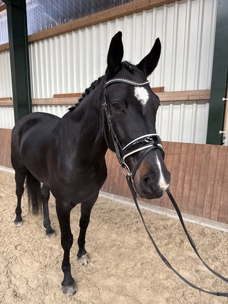 Zum Verkauf steht eine 6-jährige Hannoveranerstute von V-Plus/Buckingham mit drei tollen GGA und einem Traumcharakter. Sie ist schonend angeritten worden. Nach dem Anreiten (vierjährig) durfte sie noch einen Winter auf der Wiese verbringen. Derzeit befindet sie sich auf DRP A Niveau und ist das perfekte Nachwuchspferd für einen ambitionierten Amateur oder Profi. Die Stute wurde noch nicht öffentlich vorgestellt. Violetta ist im Umgang sehr lieb, menschenbezogen und unkompliziert. Sie ist unerschrocken, hat ein angenehmes „Go“ und reagiert fein auf die Hilfen. Aufgrund des Alters und Ausbildungsstand natürlich kein absolutes Anfängerpferd - aufgrund ihres Charakters kann ich sie mir aber sehr gut bei einem Amateur mit entsprechender Erfahrung und/oder Trainer an der Hand vorstellen. AKU inkl. Röntgenbilder vom Rücken aus 06/2025 liegen ohne Befund vor. Schmiede- und verladefromm.