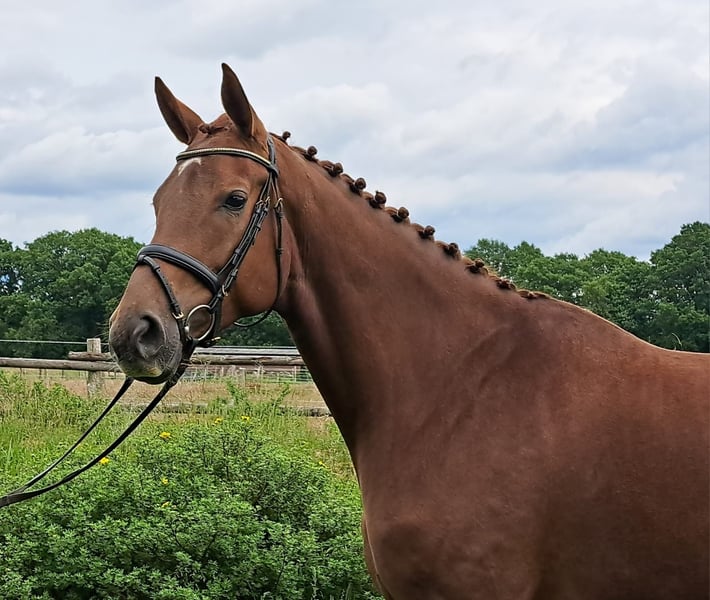 Hier bieten wir eine ausdrucksstarke 5 jährige Stute von Floriscount x Hochadel an. Wachstumsbedingt wurde ihr viel Zeit zum Reifen gegeben. Ausgestattet mit drei sehr guten Grundgangarten entwickelt sich hier ein ganz besonderes Dressurpferd. Bei entsprechender Förderung sicherlich ein Pferd für das große Dressurviereck.