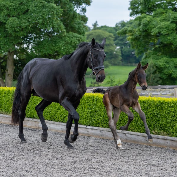 Royale is a gorgeous bigger sized mare with a very calm character & 3 big paces. She is uncomplicated to handle in every way & has been an easy breeder 2x & great mum. Available on the weaning of her current super foal but in the meantime can be re bred with the stallion of your choice (at your expense of the semen & vet). Also could be a lovely mare for a first time or less experienced breeder to start with a lovely young but easy mare with some breeding experience herself and very forgiving patient character. No history of injury, she also could be backed to ride after weaning and descends from a successful FEI dam line also with placings in the 7yr WBFSH Champs, so we would expect she can be a very successful riding horse too and very easy to start with her lovely calm nature. Note she does suffer from sweet itch so needs management for this.
