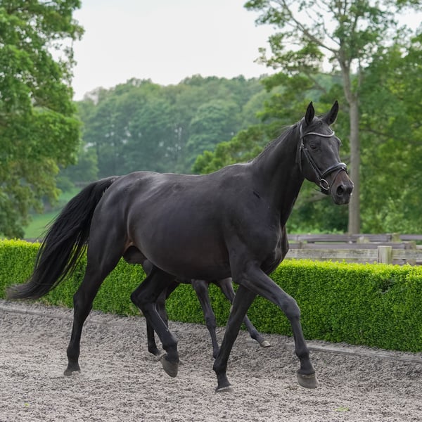 Royale to piękna, większa klacz o bardzo spokojnym charakterze i trzech dużych chodach. Jest łatwa w obsłudze pod każdym względem i była łatwą klaczą hodowlaną dwa razy oraz wspaniałą matką. Dostępna po odsadzeniu swojego obecnego super źrebaka, ale w międzyczasie może być ponownie pokryta ogierem według Twojego wyboru (na Twój koszt za nasienie i weterynarza). Może być również wspaniałą klaczą dla hodowcy, który zaczyna lub ma mniej doświadczenia, aby rozpocząć z piękną, młodą, ale łatwą klaczą z pewnym doświadczeniem hodowlanym i bardzo wyrozumiałym, cierpliwym charakterem. Nie ma historii kontuzji, może być także osiodłana po odsadzeniu i pochodzi z udanej linii matki FEI, która również osiągnęła miejsca w Mistrzostwach WBFSH dla 7-latków, więc oczekujemy, że może być bardzo udanym koniem do jazdy, a jej wspaniała, spokojna natura sprawia, że jest bardzo łatwa do rozpoczęcia. Należy zauważyć, że cierpi na słodką swędzenie, więc wymaga zarządzania w tej kwestii.