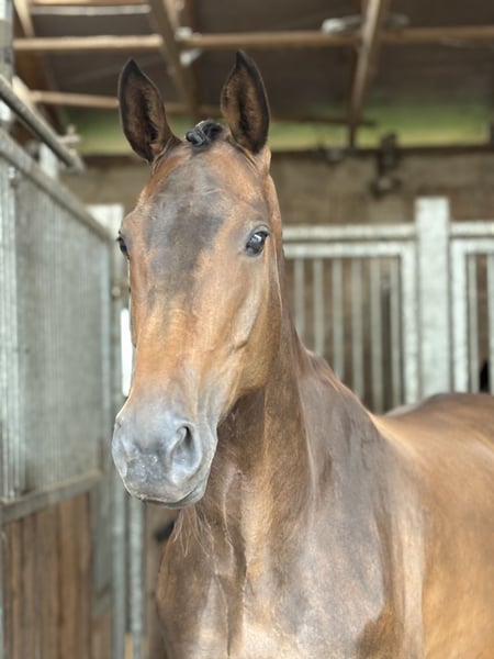 Te koop is een 7-jarige merrie van Borsalino uit een Weltmeyer moeder, rechtstreeks van de fokker. Baroness is ongeveer 169 cm groot en straalt in haar bruine jas. Ze was 4 jaar oud tijdens de merrietest en is ingeschreven in het stamboek. In 2023 en 2024 heeft ze elk jaar een veulen gekregen en wordt sinds oktober 2024 voorzichtig aangereden. Ze is vrachtwagenmak, gaat braaf naar de smid, kent tractoren, kinderen en honden. Ze is een paard met een eerlijke karakter en wil de mens altijd plezieren. Zowel in de dressuurring, met cavaletti's of ook in de grondwerk toont ze zich aandachtig en bereidwillig. Echter, de merrie is niet geschikt voor beginners, omdat ze een uitgebalanceerde en veilige ruiter nodig heeft die haar kan blijven ondersteunen in de spieropbouw en de basisopleiding. Voor meer informatie en video's graag op aanvraag. Met vriendelijke groet, Anna