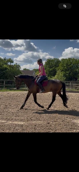 Zum Verkauf steht eine 7 jährige Stute von Borsalino aus einer Weltmeyer Mutter direkt vom Züchter. Baroness ist ca. 169 cm groß und strahlt in brauner Jacke. Sie war 4 jährig bei der Stutenleistungsprüfung und wurde ins Stutbuch eingetragen. 2023 und 2024 bekam sie jeweils ein Fohlen und wird seit Oktober 2024 behutsam antrainiert. Sie ist verladefromm, geht brav zum Schmied, kennt Traktoren, Kinder und Hunde. Sie ist eine Pferd mit ehrlichem Charakter und möchte dem Menschen stets gefallen. Sowohl im Dressurviereck, mit Cavalettis oder auch in der Bodenarbeit zeigt sie sich aufmerksam und leistungswillig. Jedoch ist die Stute nicht für Anfänger geeignet, da sie einen ausbalancierten und sicheren Reiter/in benötigt, der sie im Muskelaufbau und in der Grundausbildung weiterhin gezielt unterstützen kann. Weitere Infos und Videos gern auf Anfrage. Liebe Grüße Anna