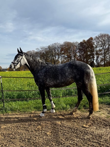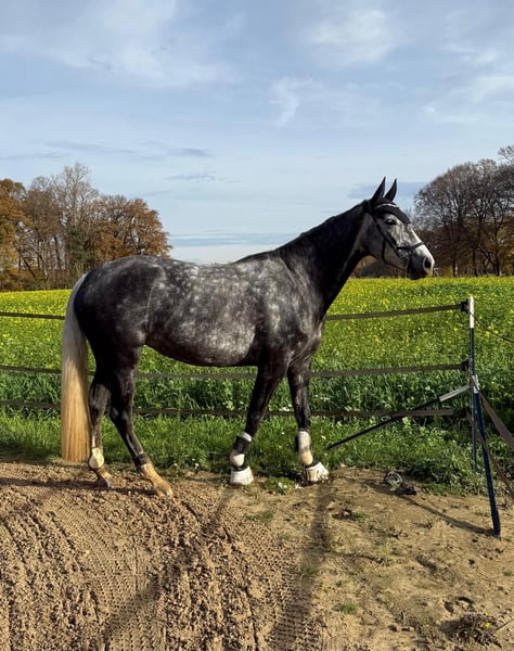 Sprzedaję moją 6-letnią klacz. Ma około 170 cm wzrostu i pochodzi z dobrej linii skokowej. Niestety, nie mam wystarczająco czasu, aby w pełni wykorzystać jej potencjał, jest to koń wymagający intensywnej pracy. Zimą nie jest łatwa pod siodłem. Dlatego też wyraźnie sprzedaję ją jako koń nieużytkowany pod siodłem, przeznaczony głównie do hodowli lub jako koń towarzyszący. Nie można jej więc wypróbować pod siodłem ani jej przed jeździe. W razie potrzeby mogę przesłać filmy. Ma nieograniczone możliwości skokowe, a jej matka odnosiła sukcesy sportowe aż do poziomu S***. Nie doznała żadnych przykrych doświadczeń w swojej dotychczasowej karierze jeździeckiej, choć przez liczne przerwy nie jest w pełni wykształcona zgodnie z wiekiem. Pod siodłem skakała i robi to bardzo poprawnie, dając dobre wrażenie z jazdy. Ma tylko jedno oko, co jednak jej nie ogranicza w żadnym zakresie. Nie znam innych problemów zdrowotnych. Obecnie nie posiada ważnego certyfikatu TUV. Zęby są świeżo wyczyszczone, jest regularnie szczepiona i jest pod opieką kowala. Więcej informacji wyłącznie osobiście – proszę o kontakt. Chętnie odpowiem na pytania w razie potrzeby.