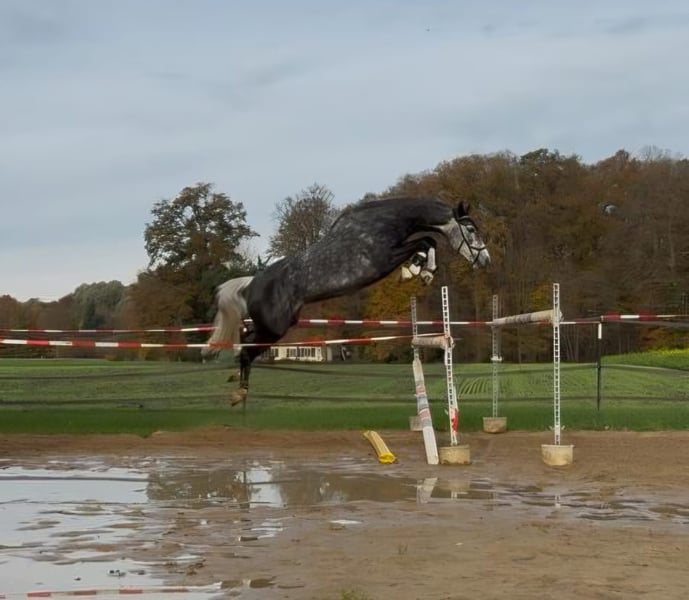 I am selling my 6-year-old mare. She is approximately 16.1 hh and has a strong jumping pedigree. Unfortunately, I lack the time to fully utilize this work-intensive mare. She can be somewhat difficult to ride during the winter months. Therefore, she is explicitly being sold as a non-ridden horse and as a broodmare or companion horse. She cannot be tried under saddle and will not be ridden beforehand. Videos can be sent upon request. She possesses unlimited talent over fences, and her dam was also successful in sport up to S*** level. She has had a trouble-free riding career so far, although due to several breaks, she has not been trained age-appropriately. She has jumped under saddle and does so very well, providing a good riding feel overall. She has only one eye, but this never limits her in any way. No other health issues are known. There is no current TÜV. Her teeth have been recently checked, and she is regularly vaccinated and shod. Further details are available upon personal inspection. Feel free to contact me via message. I am happy to answer any questions you may have.