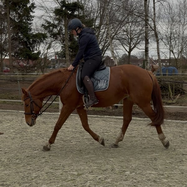 This mare, born in 2018, impresses with her gentle nature, honesty under saddle, and strong bond with her human handler. Standing approximately 1.64 meters, she is an ideal upgrade horse for riders who have outgrown the beginner level and are seeking a more sensitive, refined partner. She is not a beginner horse, but under saddle, she behaves well, cooperates, and is reliable, provided she has a calm, confident rider who can give her a sense of security. She requires a consistent caregiver and clear, fair communication. She does not thrive with frequent rider changes – stability and trust are essential for her. Once this trust is established, she becomes an extremely motivated and honest partner. Bred from Qualito out of a Gramsel II mare (by Graf Top), she has been bred for dressage and show jumping. She is trained up to A-level in dressage and regularly participates in E-level jumping courses. Additionally, she has proven reliable during riding badge courses and shows potential for further development. In free work, she demonstrates particular talent and attentiveness. Even off-site, at clinics or competitions, she remains calm and dependable. The mare thrives in a pasture-based environment, adapts well, and ranks in the middle of the herd hierarchy. She is not given away for free, but a fair price is negotiable for a suitable home and a likeable owner. Additionally, accessories such as a dressage saddle and a jumping saddle can be included at an extra cost. Due to my demanding professional schedule, I kindly ask serious interested parties to arrange a personal viewing promptly rather than lengthy, non-committal WhatsApp conversations. Videos are available and can be sent in advance via WhatsApp. We prefer to discuss further details during a direct, personal meeting.