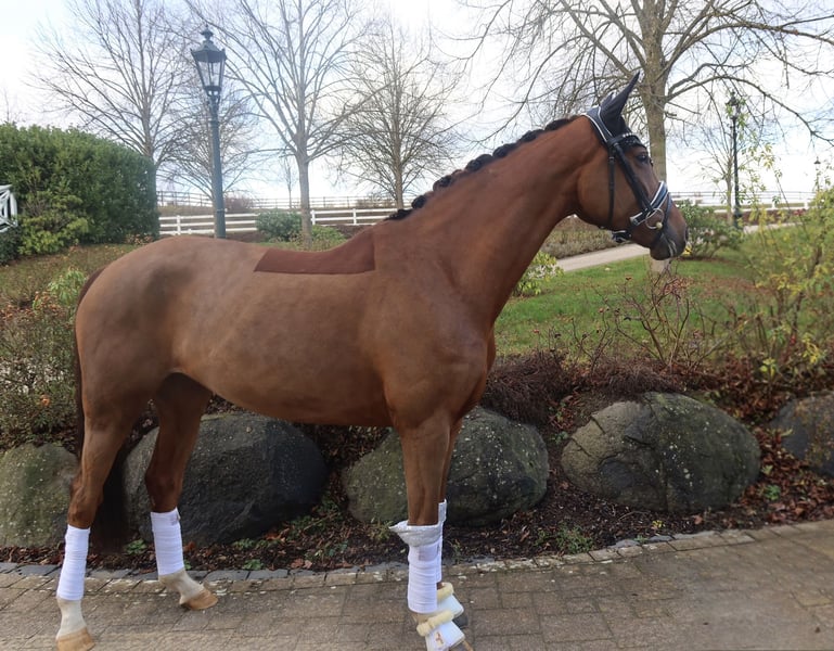 For sale is this very elegant and well-behaved mare by Secret x Scuderia, which impresses not only with her appearance but also with her gentle temperament and excellent quality across the board. Recently placed in dressage horse class L, she consistently remains calm and focused during competitions. She also enjoys daily training and handling, always eager to please her rider, easy to manage, and very responsive to aids, making her suitable even for children to ride effortlessly. Currently on her way toward class M, she demonstrates a strong talent for traversals. She is familiar with hacking, transporter travel, the blacksmith, and turnout with several horses. Due to her loving nature and high quality, she would undoubtedly be a great candidate for success in the Children's Tour and later in the Junior Tour. Good X-rays are available. The mare is located in 35708 and can be visited and tested at any time. For further inquiries or interest, please contact: 017620052380, preferably via WhatsApp.