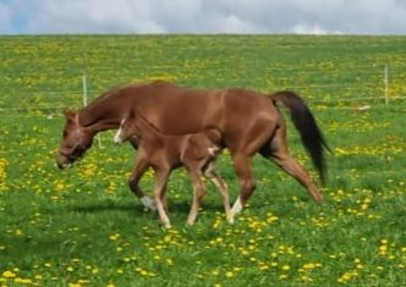 A la venta por motivos de reproducción: Hermosa y llamativa yegua alazán de BENICIO x WATERFORD, estatura de 1,66 m, con potro de cría de mayo de 2025 sired by ESCANTO PS. Ha sido montada a nivel E/A, realiza saltos con buen estilo, actualmente no en entrenamiento ya que aún está en libertad con su potro. Entrenada por una amazona de nivel S, con licencia de jinete de alto rendimiento, aunque luego se montó de manera ocasional. Hermano completo de la madre, exitoso en doma clásica con categoría S. Yegua dócil, muy sociable y cercana a las personas, también muy sencilla con su potro. Procede del linaje de SCHLIESSERIN, uno de los mejores linajes de yeguas en Hannover. No se conocen problemas de salud ni comportamientos indeseables, ha estado en mi propiedad desde potra. Criada en paddock, pero también familiarizada con box y pasto durante el día. Fue montada por primera vez a los 4,5 años debido a la falta de jinete, y a los 5 años en entrenamiento, sin presentar problemas. La revisión veterinaria (AKU) puede realizarse por cuenta del comprador. Ha tenido dos potros, ambos de ESCANTO PS, de 2023 y 2025. No está preñada para 2026. El potro de 2025 ya ha sido vendido y será entregado a mediados de noviembre. Videos de monta disponibles. Para cualquier consulta, no dudes en contactarme.