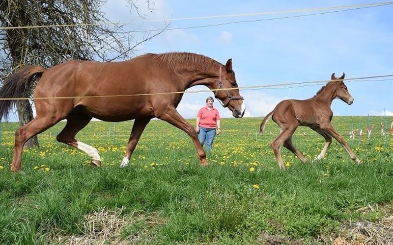 Vendesi a causa di esigenze di allevamento: Bellissima fattrice rossa da BENICIO x WATERFORD, altezza 166 cm, con un puledro maschio nato nel maggio 2025 da ESCANTO PS. Addestrata a livello di S (squadra di dressage), con brevetto SLP, successivamente montata solo sporadicamente poiché ancora in fase di svezzamento. Addestramento svolto da amazzone di livello S, con brevetto SLP; successivamente montata solo occasionalmente. Fratello completo della madre, vincitore in dressage a livello S! Stalla molto tranquilla, socievole e molto affettuosa con le persone, anche molto semplice con i puledri. Origine della famiglia SCHLIESSERIN, una delle migliori linee di fattrici Hannoverane! Nessun problema di salute o difetti comportamentali noti, cresciuta fin da puledra nel mio allevamento. Ha vissuto in paddock all'aperto, ma conosce anche box e pascolo notturno e diurno. Montata per la prima volta all'età di 4,5 anni a causa della mancanza di cavalieri, poi a 5 anni in addestramento, senza aver mai dato problemi. L'AKU (esame veterinario) può essere effettuato a spese dell'acquirente. Ha avuto due puledri, entrambi da ESCANTO PS, rispettivamente nel 2023 e nel 2025; non è stata coperta nel 2026. Il puledro del 2025 è già stato venduto e sarà ceduto a metà novembre. Altre clip di video di monta disponibili. Per qualsiasi domanda, non esitate a contattarmi.