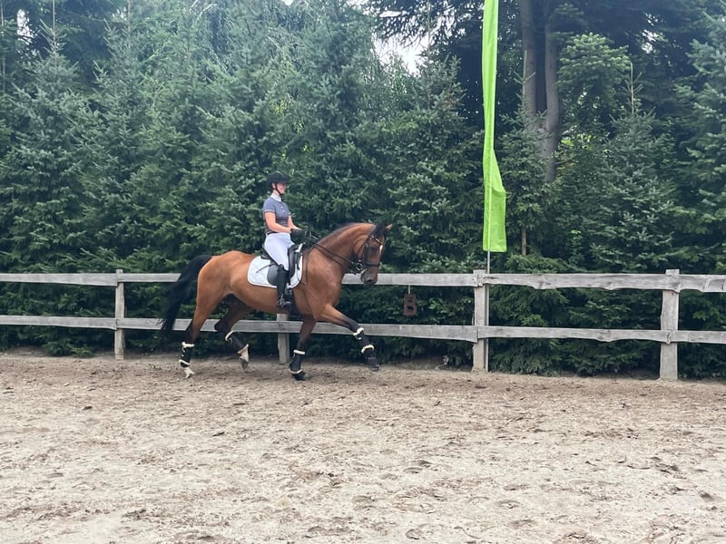 For sale is this lovely 8-year-old Hanoverian mare, who impresses with her excellent basic gaits and great presence. ✨ Dressage: -Very good, elastic basic gaits -Expressive front leg with plenty of shoulder freedom -First heavy lessons learned -Motivated, learns quickly, and brings a lot of joy 🤍 Character: -Absolutely well-behaved, uncomplicated, and reliable -Suitable for children, beginners, or anxious riders In one hand since the age of 3/4 years (leisure rider). Private sale, also available with accessories. 🌿 Additional advantages: -Knows trail rides and is always calm in the field -Reliably jumps smaller courses with secure flying changes 🩺 Health: -Always healthy, no restrictions, current X-rays are available. An ideal horse for amateur riders who want to ride dressage (and jumping) at a good level while also valuing a balanced, reliable partner.