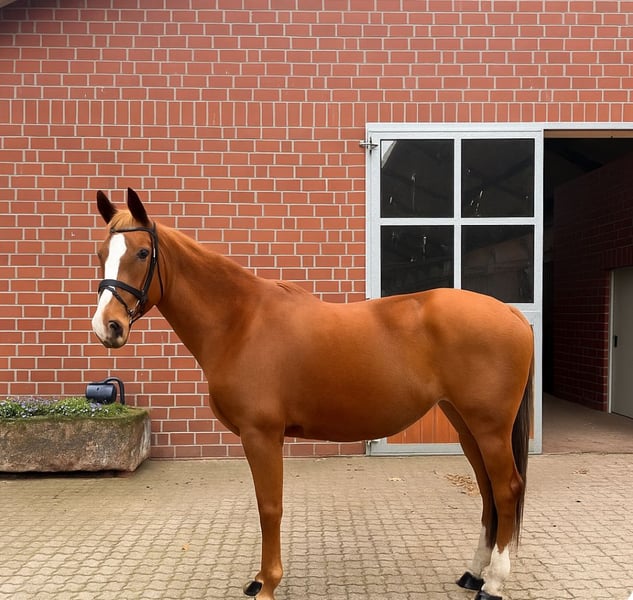 🌟 Wunderschöne Hannoveraner Fuchsstute „Romy“ – liebevolle Freizeitpartnerin mit Herz 🌟 Rasse: Hannoveraner Geschlecht: Stute Alter: 7 Jahre Farbe: Fuchs Einsatzgebiet: Freizeit / Allround / Ausbildungspferd Romy ist eine bildhübsche, 8-jährige Hannoveraner Fuchsstute, die bisher von einem jungen Mädchen im Freizeitbereich geritten wurde. Ein echtes Herzenspferd für Alltag und Freizeit. Mit drei Jahren brachte Romy ein Fohlen zur Welt und wurde danach mit viel Ruhe, Geduld und Zeit vielseitig ausgebildet. Sie kennt die Arbeit in der Halle, auf dem Platz und im Gelände. Romy ist schmiedefromm. Sie kennt sowohl Boxen- als auch Weidehaltung. Sie ist menschenbezogen und verschmust. Da sie bislang keine Turniererfahrung hat, eignet sie sich ideal als Freizeitpartnerin oder für Reiter*innen, die eine weitere Ausbildung anstreben.