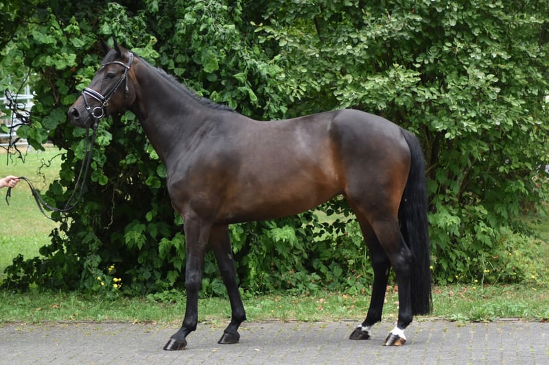 Finja no solo es una yegua con una excelente ascendencia, sino que también cuenta con grandes movimientos y un carácter agradable. La yegua ha tenido suficiente tiempo para crecer y fue montada tarde. Salidas a solas o en grupo no son un problema. Finja también disfruta de saltos pequeños, lo que representa una agradable variación a las lecciones de doma. En el marco de un estudio, se certificó que la yegua está libre de ECVM. También se realizó un examen de cría (2 años) sin hallazgos. La yegua también sería adecuada para el deporte paraecuestre o como un gran caballo para aficionados. Quien tenga más preguntas sobre Finja puede comunicarse al 0178 3572748. ¡Esperamos su llamada!