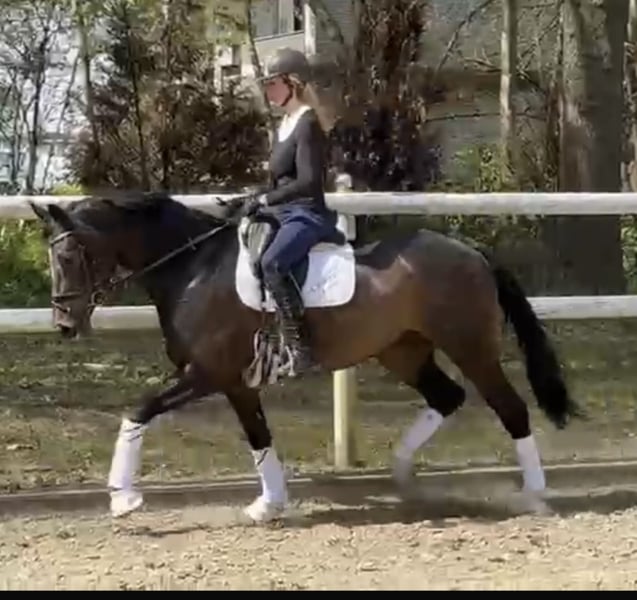 On behalf of a client, an 8-year-old, very typey and stylish mare is for sale. This mare impresses with her beauty... compact and well-built with a lovely side profile. She is trained up to L level and provides a pleasant riding experience. Very comfortable to sit in, with a smooth, rhythmic gait and good cadence. She doesn't have excessive go... she could benefit from more riding. Location is Hamm. Please contact us by phone if interested. An older, valid veterinary certificate is available, including clinical and radiological reports (protocol available).