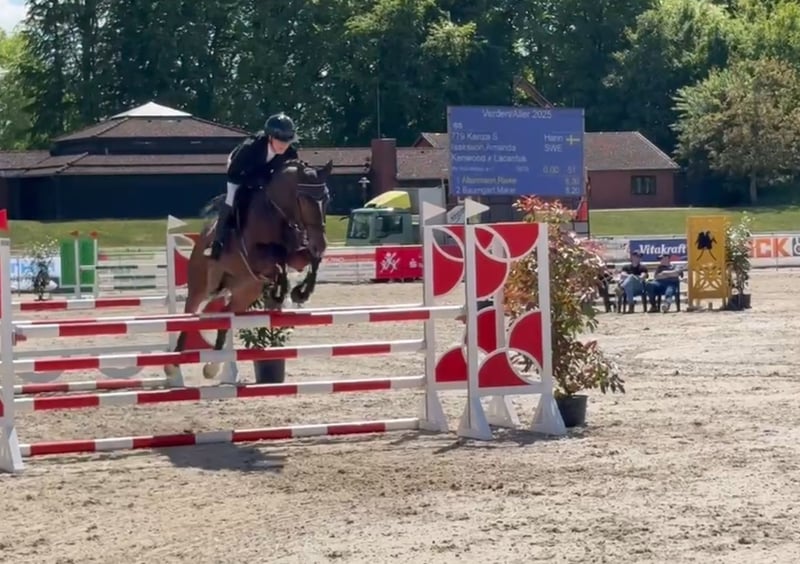 Kenza è una figlia di Kenwood da madre Lacantus. La cavalla bay è nata, addestrata e portata nel mondo dello sport da noi e ora cerca un nuovo partner per sport o tempo libero. Una sportiva di carattere, con molta qualità e cuore. Proviene da una genealogia di grande successo. Sua madre ha anch'essa avuto una carriera da S nel salto ostacoli. Per ulteriori informazioni, non esitate a contattarci telefonicamente al 01723603659.