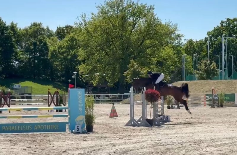 Kenza is a daughter of Kenwood out of a Lacantus mother. The brown mare was born, trained, and brought into sports with us and is now looking for a new partner for sport or leisure. A typy athlete with a lot of quality and heart. She comes from a highly successful lineage. Her mother was successful herself. For further questions, feel free to call 01723603659.