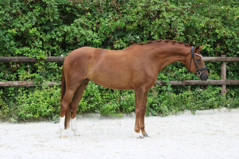 **Sales Advertisement: Beautiful Hanoverian Mare** For sale is our talented Hanoverian mare, born in 2018. With her striking chestnut coat and a height of 172 cm, she is a real eye-catcher. This mare not only impresses with her appealing appearance but also with her enormous potential in dressage. She already shows promising progress in her training and has a friendly, eager-to-learn disposition, making her an ideal partner for ambitious riders. She is well-behaved, well-mannered, and has a balanced temperament. Whether for leisure or competition – this mare offers many opportunities and will certainly bring a lot of joy. She is placed in dressage M tests and regular M dressage with a double bridle. Additionally, she is a reliable partner in the field, whether alone or in a group. If you are interested or have further questions, we look forward to your message!