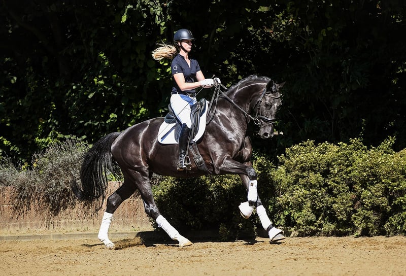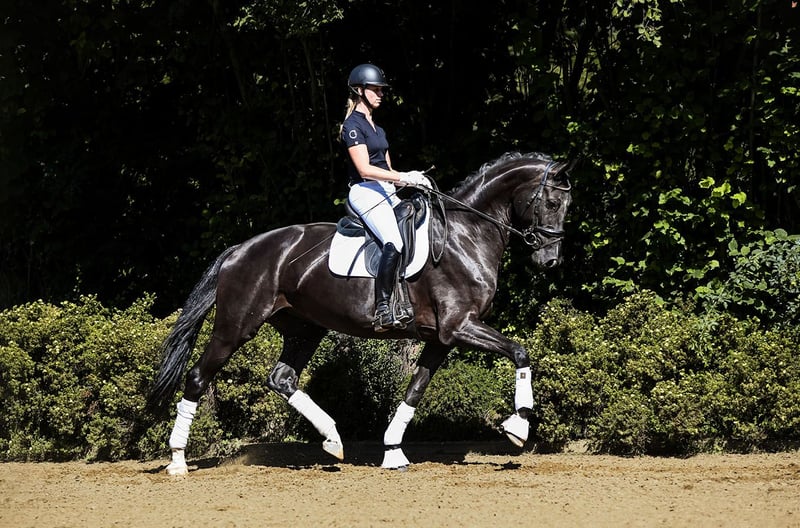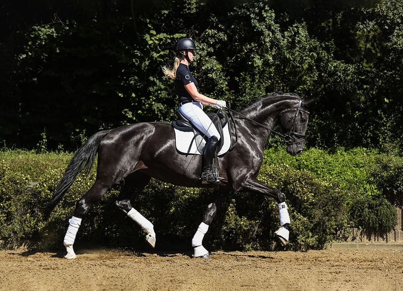 Zum Verkauf stehen 35 Dressur-, Spring- und Freizeitpferde direkt vom Züchter Alle Verkaufsfperde unter: https://brodhecker-burghof.de/sportpferde/ Hübsche Rappstute mit toller Arbeitsmoral und dem gewünschten Go. Donnalara überzeugt im Viereck mit hervorragenden Grundgangarten, ihrem Ehrgeiz und einem klaren Kopf. Auch als Voltigierpferd würde sie sich hervorragend eignen. Erste Trainingseinheiten im Voltigieren hat sie bereits sehr gut gemeistert (Video auf Anfrage). Vater DSP De Sandro wurde vier mal in Folge DSP-Champion und ist erfolgreich in der Schweren Klasse. Mutter Smiling Grace brachte mit Rittersonne (v. Ritter Remus) bereits einen bis S-Dressur erfolgreichen Sohn hervor. Bei Interesse an unseren Verkaufspferden, kontaktieren Sie uns gerne telefonisch oder per WhatsApp: Springpferde - Tel. (+49)159/06026914 (Johannes Brodhecker) Dressurpferde - Tel. (+49)172/8733686 (Volker Brodhecker)