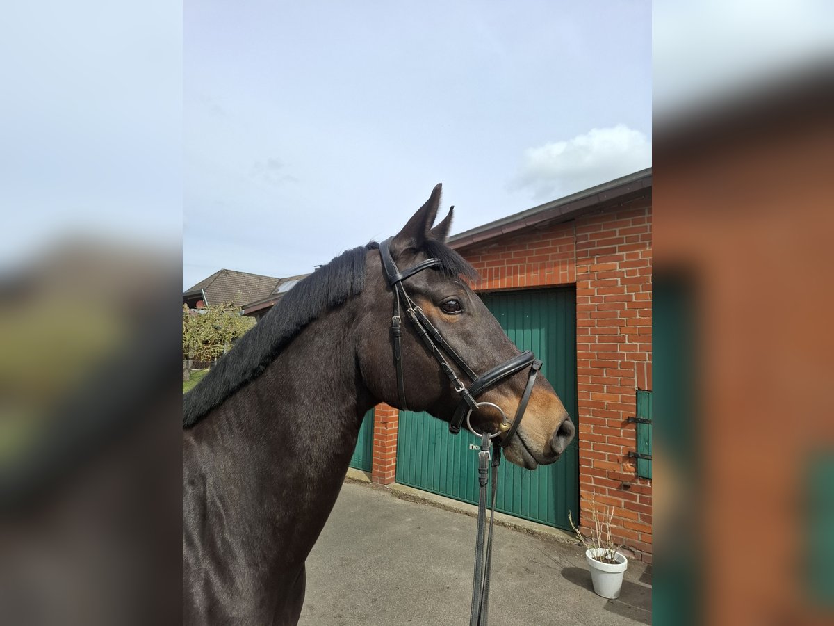 Zum Verkauf steht eine typvolle Stute, Jahrgang 2017, abstammend von Schwarzgold aus einer Hannoveraner Mutter. Sie überzeugt durch ihre harmonische Erscheinung, ihren ausdrucksstarken Kopf und ihre moderne Silhouette. Unter dem Sattel zeigt sie sich fein an den Hilfen, lernwillig und stets bemüht, alles richtig zu machen. Sie ist in allen drei Grundgangarten geritten, wobei insbesondere ihr raumgreifender Schritt hervorzuheben ist. Die Stute wurde bisher freizeitmäßig gearbeitet, bringt jedoch die nötige Qualität und Einstellung mit, um weiter gefördert zu werden. Auch Ausritte ins Gelände kennt sie und zeigt sich dabei aufmerksam und kooperativ. Aufgrund ihrer sensiblen und feinen Art eignet sie sich besonders für einen einfühlsamen, souveränen Reiter, der ihr Sicherheit gibt und ihr Vertrauen weiter stärkt. Im täglichen Handling ist sie angenehm im Umgang und eher rangniedrig. In neuen Situationen kann sie anfangs noch etwas vorsichtig reagieren und sucht dabei die Orientierung am Menschen – mit Ruhe und Klarheit lässt sie sich hier sehr gut führen. Dank ihrer interessanten Abstammung und ihres Typs ist sie auch für die Zucht eine spannende Option. Reitvideos senden wir bei ernsthaftem Interesse gerne zu. Der Verkauf erfolgt ausschließlich aus Zeitgründen und zur Bestandsverkleinerung.