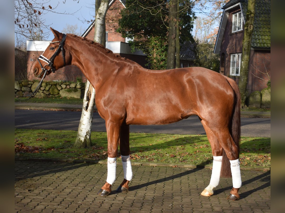 Hübsche Stute, die sich unkompliziert und gelassen präsentiert. Sie ist sehr brav zu reiten und kennt auch Gelände. Dazu ist sie nervenstark und von jedermann zu reiten. Mit ihrer edlen Erscheinung und Bewegungungen in guter Qualität ist sie ein echter Hingucker im Viereck. Ein Pferd zum Losreiten und Schleifen sammeln! Mehr Infos finden Sie auf unserer Homepage. Probereiten jederzeit nach Absprache möglich.