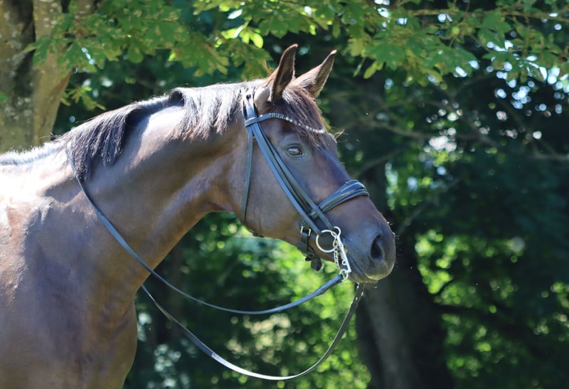Miss Croco is sired by the top stallion Tannenhofs Fahrenheit, who successfully competed up to Grand Prix under Anja Plönzke. Fahrenheit Gt has already produced several offspring that are also successful nationally and internationally up to Grand Prix. On the dam's side, Croco is by the stallion Rubinero, who himself was successful up to PSG and has produced offspring that have reached Grand Prix. Miss Croco is an expressive mare with a lot of fighting spirit and ambition. She is characterized by her absolute willingness to perform, as well as her three excellent basic gaits. The stunning mare has been in our possession since she was a foal (at 6 months old). At three years old, she was gently backed and subsequently covered, allowing Croco to spend another summer in the pasture. In the winter after weaning her foal, Croco was re-trained and ridden further. In 2022, the Verband premium mare Miss Croco gave birth to a colt by Destello (successful under Beatrice Buchwald), and two years later, she passed her mare performance test. Currently, the mare is at Dressage Horse M level, with flying changes and working pirouettes already started. She confidently performs trot and canter traversals. Due to her willing nature, she can sometimes be a bit over-motivated; on the other hand, this makes her not lazy and suitable for a well-riding junior. *** Suitable for juniors or young riders *** A mare with a lot of charm and heart, possessing a certain resilience for sport and breeding.