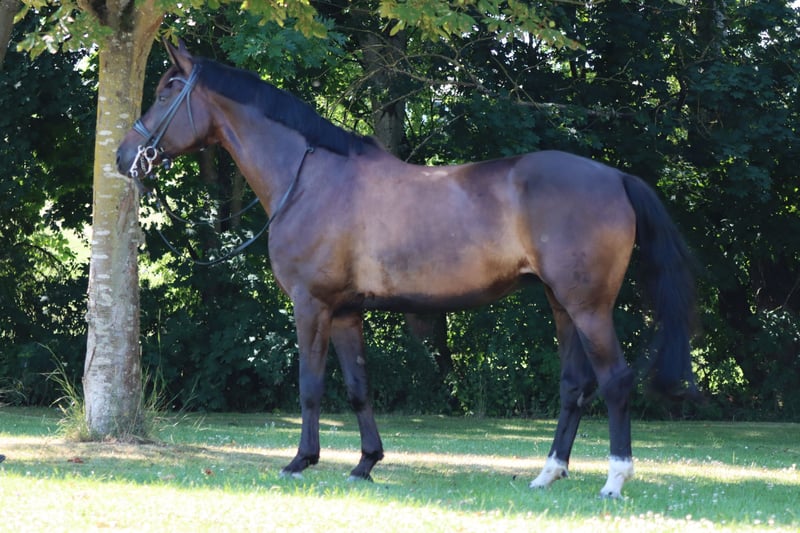 Mademoiselle Croco descend du célèbre étalon Tannenhofs Fahrenheit par son père, qui a couru avec succès jusqu'au Grand Prix sous la conduite d'Anja Plönzke. Fahrenheit Gt a déjà produit plusieurs descendants qui ont également réussi au niveau national et international jusqu'au Grand Prix. Du côté maternel, Croco est issue de l'étalon Rubinero, qui a lui-même été performant jusqu'au PSG et a engendré des descendants jusqu'au Grand Prix. Mademoiselle Croco est une jument expressive avec beaucoup de cœur et d'ambition. Elle se distingue par sa volonté de performance absolue ainsi que par ses trois excellents allures de base. La magnifique jument est en notre possession depuis son jeune âge (à partir de 6 mois). À 3 ans, elle a été montée avec précaution et a ensuite été saillie, ce qui lui a permis de passer un été supplémentaire au pré. En hiver, après le sevrage du poulain, Croco a été remise au travail et a continué à être montée. En 2022, la jument primée, Mademoiselle Croco, a donné naissance à un poulain mâle de Destello (performant sous Beatrice Buchwald), et deux ans plus tard, elle a passé son test de performance de jument. Actuellement, la jument est au niveau Dressurpferde M, les changements de pied et les pirouettes au travail ont déjà été commencés. Elle maîtrise déjà avec assurance les traversées au trot et au galop. En raison de son caractère désireux de performer, elle peut parfois être un peu trop motivée, mais d'un autre côté, elle n'est pas paresseuse et peut convenir à un junior bien monté. *** Convient aux juniors ou aux jeunes cavaliers *** Une jument avec beaucoup de charme et de cœur, qui possède une certaine robustesse pour le sport et l'élevage.