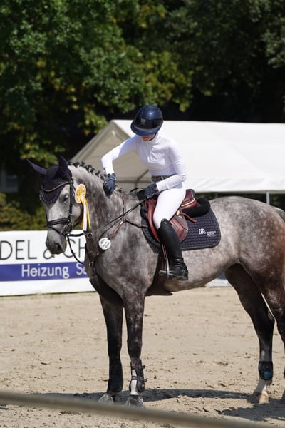 Vendo una splendida cavalla Hannoveraner, nata nel 2017. Ogni giorno sorprende per la sua grande voglia di lavorare e il suo carattere affettuoso. Il suo modo di essere calmo e coccolone la rende estremamente facile da gestire. Va tranquillamente in passeggiata in campagna ed è sempre educata sia durante il trasporto in furgone che dal maniscalco. In arena si dimostra molto ambiziosa e potente, quindi non è adatta a principianti o bambini. Ha ottenuto il punteggio M** e ha partecipato a gare di livello S a 7 anni. Quest’anno, a causa di mancanza di tempo, non l’ho potuta far gareggiare molto, quindi a 8 anni ha partecipato a pochissime competizioni. Con il cuore pesante, la cedo a causa dei miei impegni di formazione, non riuscendo più a dedicarle il tempo che merita. Röntgen di marzo 2023 e agosto 2024 disponibili. Per interessati, non esitate a contattarmi. Visite e provare i cavalli sono possibili su appuntamento (zona Göttingen). Tel: 0172/2963401