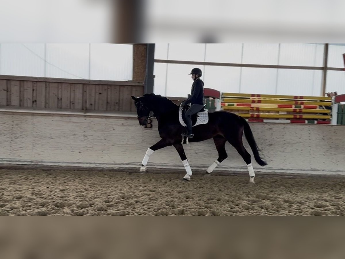 This nine-year-old mare is an exceptionally attractive, tall, and very elegant horse with solid fundamental qualities. She possesses three very good basic gaits. Her expressive trot is particularly noteworthy, while her naturally uphill canter and consistently rhythmic, correct walk complete her excellent movement profile. So far, she has been trained primarily by leisure riders, which means her dressage training has not yet been a focus. However, this presents a great opportunity: she has all the prerequisites to develop into a high-quality dressage horse with proper training. Thanks to her intelligence, good attitude towards work, and rideability, we believe she will quickly grasp new lessons and progress swiftly in her training. In handling, she is very pleasant and uncomplicated. She is human-oriented, calmly stands for grooming, remains quiet at the grooming area, and comes from very good hands—this is clearly reflected in her behavior. She is also familiar with hacking and proves to be reliable during rides. This mare is ideal for a rider who enjoys further training and developing a horse with a lot of quality. Location: Rosenheim Feel free to browse our other horses for sale—perhaps there is another suitable horse for you. The sales photos will be added in the coming days. Due to the current weather conditions, it is temporarily difficult to take suitable pictures.