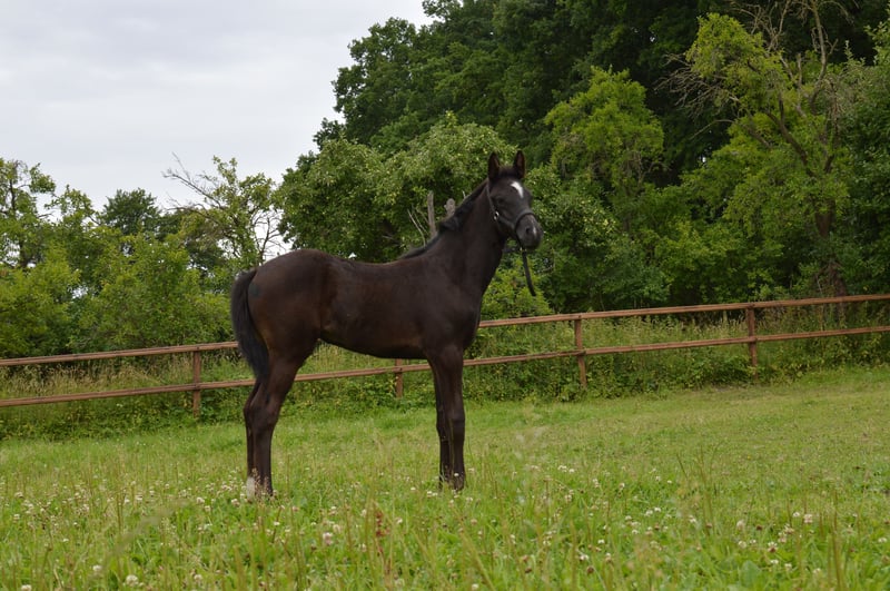**Sales Advertisement: Hanoverian Mare** For sale is a promising Hanoverian mare, born in 2025. This elegant black mare impresses not only with her appealing appearance but also with her potential not only in dressage. She is friendly and easy to handle, shows confidence, and brings a healthy dose of curiosity. She is familiar with the basics of foal training.