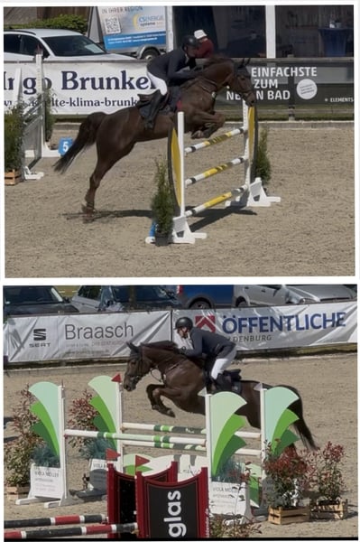 High-quality gelding available due to herd reduction: Shawny is an 11-year-old modern show jumper, distinguished by his exceptional quality, bravery, and willingness to perform. He has a comfortable go and is always controllable; he responds to the smallest aids and is eager to jump. This makes him suitable for ambitious amateurs as well as professional riders. In the show ring, he consistently proves to be a reliable partner with good awareness and caution at the jump. He has the potential and ability for higher classes. Currently, he is placed up to M** (130 cm) and has won multiple classes up to 115 cm. Shawny is a dark chestnut and approximately 1.70 m tall. Pedigree: Stolzenberg (Stakkato) x Chambertin (line of Chacco Blue) He is not suitable for beginners, riding schools, or vaulting. I am not offering him for beginner riders or training purposes. Please refrain from such inquiries. A current X-ray certificate from March 2025 is available (based on two harmless X-ray findings he has had for many years, but he is clinically sound with no issues so far, and this is reflected in the price). A consultation with my veterinarian regarding his health status can be arranged. I do not sell X-ray images, only a top-quality young horse that can win every class from the start. Therefore, I will not send X-ray images without genuine interest in the horse. Anyone seeking a horse with clean X-ray reports without minor findings should be prepared to pay significantly more—up to 50,000 instead of 15,000 euros! Location: Lohne, 49393 He will only be sold to a serious buyer; no distressed sale!