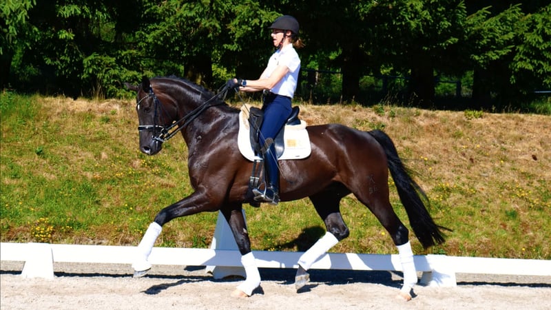 Impressive and expressive movement artist. Very present wherever he appears and multiple winner in class S with over 70%. A special recommendation for an immediate successful start in the advanced class. A current veterinary check is available. For further information and appointments for trial riding, please feel free to contact us by phone at any time. Dressurpferde Rassmann GmbH, Hinterweide 5, 36399 Freiensteinau, phone: +49-(0)172-5330585, Email: info@dressurpferde-rassmann.de