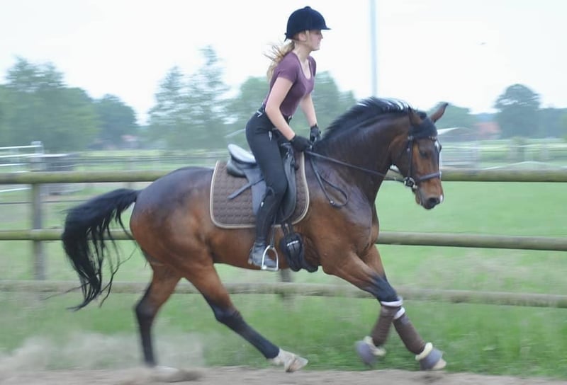 Due to time constraints from my studies, I unfortunately have to part with my beautiful, well-built gelding with a lot of go and good basic gaits. Doorigo has a lot to offer physically but can also become tense quite easily. To fully utilize his qualities, he needs a confident person who is not easily unsettled and can provide him with calmness and security. This text is very comprehensive and honestly formulated, as I wish for Doorigo to find a suitable and long-term new home! 1. Training and Care: Doorigo has been part of our family for eight years. During this time, he has been consistently exercised and trained, with the main focus on dressage riding, lunging, groundwork, walks, and also trail rides. In dressage, he performs at a secure A level and masters some L tests. In the arena, I often ride him without a saddle and occasionally with a neck ring, which he handles very well. He has always been provided with minerals, good quality hay, and daily turnout. His hooves have been regularly attended to by the farrier. The saddle has been regularly adjusted to ensure that his back muscles can develop optimally. In a familiar environment, he is very relaxed and is also suitable for beginners; however, in unfamiliar terrain, he requires a rider who can provide him with a lot of security and perhaps even takes the time to show him things from the ground first. In jumping, he masters small gymnastic jumps but requires a secure lead. Dressage is, however, his main discipline. 2. Trail Riding and Terrain: Trail riding is possible in calm weather with a safe companion horse, as long as the rider conveys trust to him and does not become unsettled in stressful situations. 3. Farrier: No problems. 4. Loading: I have occasionally loaded Doorigo for outings or external training; I have also sometimes loaded him just for practice without actually going out, so he knows it but also needs calmness and security from the accompanying person. 5. Competitions: We have taken Doorigo to competitions a few times. It has become clear that this causes him a lot of stress and little enjoyment. While there were tests in which he performed well, it is primarily important to me that a horse enjoys what it does, so he is not suitable for riders with primary competition ambitions. A small local competition should not be a problem, though. If you enjoy slowly and playfully exploring new realms without pressure and like to ride a horse with great potential, you could be the right person for him. Feel free to contact me with any further questions! Email: Lisa.kari763@gmail.com