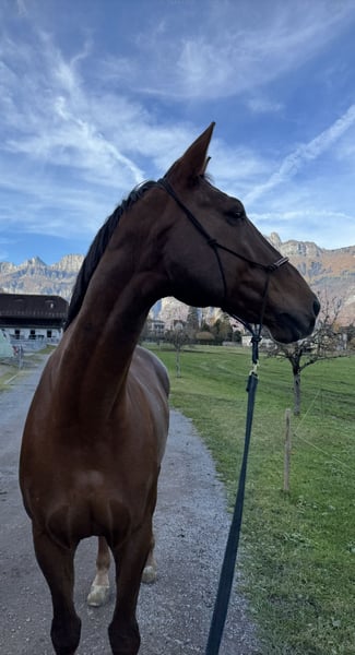 Zum Verkauf steht der 13-jährige Wallach – ein ehrliches, sensibles Pferd mit viel Motivation und sichtbarer Freude an der Arbeit mit seinem Menschen. Er hat schöne Gänge und ist richtig toll zu reiten. Er ist gesund, fit und kräftig, mit Energie und Arbeitslust. Er reagiert fein auf die Hilfen, möchte fair und korrekt geritten werden und zeigt sich dann brav, kooperativ und sehr bemüht. Besonders schön ist seine menschenbezogene Art: Er geniesst es, beschäftigt zu werden, steht gerne vorne an der Box und wartet darauf, etwas mit seinem Menschen zu unternehmen. Neben dem Reiten liebt er auch Bodenarbeitsübungen sowie ruhige, bewusste Arbeit, bei der die Verbindung zwischen Pferd und Mensch im Vordergrund steht. Genau diese Art der Zusammenarbeit liegt ihm sehr. Im Springsport ist der Wallach siegreich bis 1.20 m und klassiert im 1.25 m. Er bringt Erfahrung und Qualität im Springsport mit und kann weiterhin im Parcours eingesetzt werden – bevorzugt von einem Reiter, der ihn pferdegerecht und fein fördert. Er eignet sich ideal für einen erfahrenen Menschen, der Freude an vielseitiger Arbeit und an einer partnerschaftlichen Beziehung zum Pferd hat. Der Verkauf erfolgt aufgrund veränderter persönlicher Umstände während der Schwangerschaft. Nähere Angaben und Videos auf Anfrage.