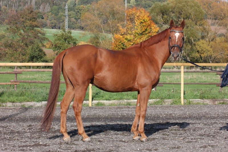 I am Wilbur... A 2012-born gelding standing at 16.1 hh – sensitive, perceptive, and honest. I perceive my surroundings very keenly and need calm, clear, and patient handlers. I am placed in the novice dressage class and already familiar with some L-level exercises. When ridden by someone who gives me time and provides me with confidence, I work focused and reliably. Haste or pressure unsettle me – I need someone who understands my sensitive nature and approaches me with calmness. In handling, I am friendly, attentive, and eager to do my best. Once I trust my rider, I become a loyal partner who closely bonds with my person. I am not looking for a rider who wants to "try something quickly" – but rather someone with feeling and patience. Those who are willing to take the time with me will find a horse with heart, character, and soul.