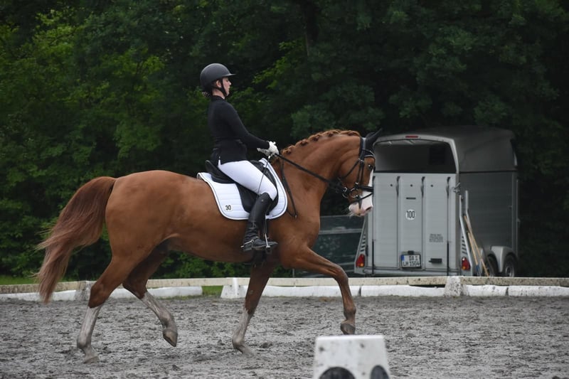 "Bel Rosado" pochodzi z własnej hodowli i urodził się 06.06.2011. Jest absolutnym przyciągaczem wzroków i prawdziwym skarbem w obcowaniu! Ma jasny umysł, jest niezawodny, przyjazny dla dzieci i dobrze dogaduje się z innymi końmi. Pod siodłem zachwyca trzema pięknymi podstawowymi chodami i dużym wyrazem! Jest jeżdżony wyłącznie na delikatnych pomocy i zawsze sprawia wiele radości. W ujeżdżeniu opanował wszystkie lekcje L oraz pojedyncze lekcje M. Ponadto uwielbia jazdy w terenie i pokazuje również przy małych skokach dużo radości i niezawodności. W lutym 2025 roku przeszedł operację obustronnie w okolicy stawu skokowego (po wcześniejszym kulawym chodzie na jednej nodze). Leczenie zostało zakończone i ponownie trenuje bez ograniczeń. • Obecnie trzymany bez podków (zna podkowy) • Stan szczepień aktualny i pełny • Profilaktyczne leczenie zębów w maju 2025 • Regularnie odrobaczany • W marcu 2025 dopasowano mu nowy, indywidualny siodło, które można nabyć osobno w razie zainteresowania • Brak aktualnego badania weterynaryjnego, które należy przeprowadzić na własny koszt w razie potrzeby! Bardzo mi zależy na kochającym i odpowiednim domu, w związku z tym wybór nowego miejsca będzie dokonany z dużą starannością.