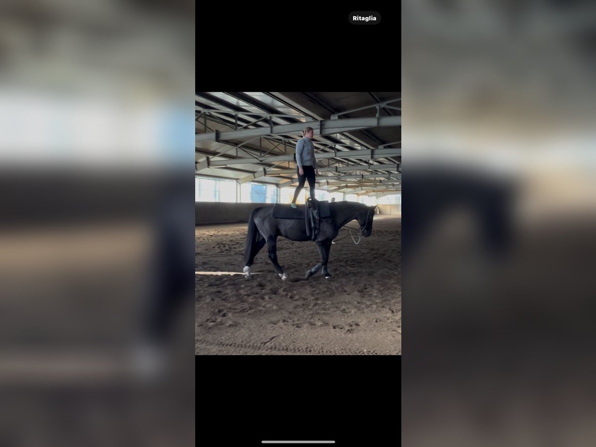 Star-noir is a Hanoverian horse of modest size but with a good conformation. Clinically, he shows no issues apart from a habit called “Ticchio,” which means he tends to bite the window when in his stable. He works as a riding school horse and has competed in show jumping events, even with beginner riders. He performs well both in the arena and in social interactions with other horses. He has an excellent aptitude for vaulting! He does not kick and is well-mannered. He is being sold because we currently have too many horses for our riding school and are seeking a new home for him.